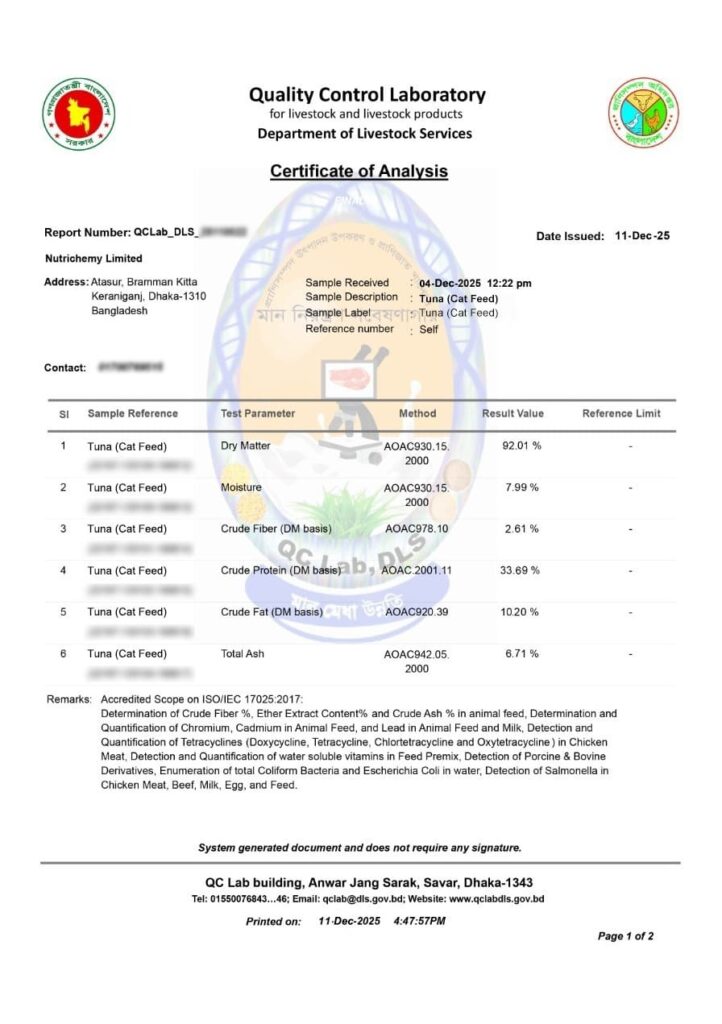 Government lab-tested ingredients & finished cat food
